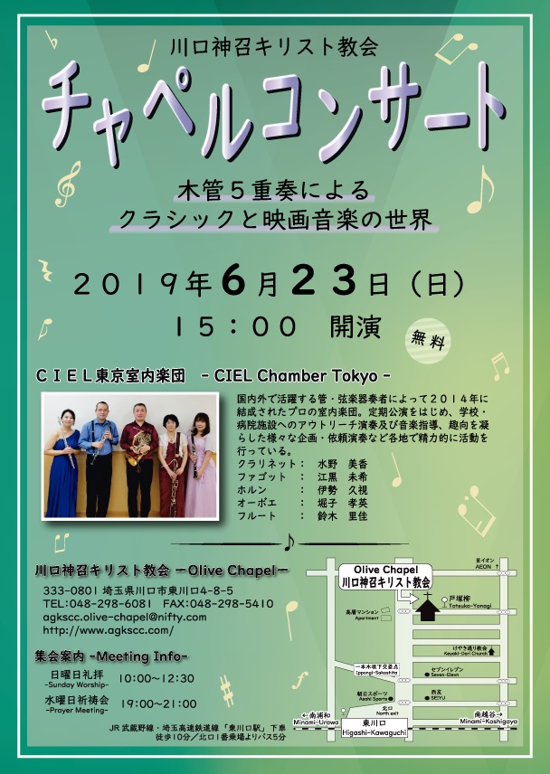 (第一日曜日は東川口オリーブチャペルと合同聖餐礼拝になります)